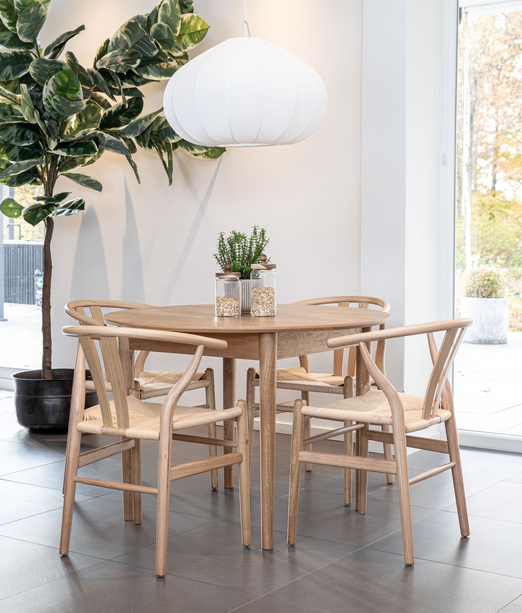 Denna matgrupp kombinerar stilren skandinavisk design med naturlig värme från eken. Oskar matbord rund 105 cm tillsammans med Oskar stolen skapar en harmonisk och tidlös matplats som passar perfekt i både kök och matsal. Den runda bordsformen gör måltiderna mer sociala och inbjudande, medan de matchande stolarna ger en enhetlig och elegant helhet. En komplett matgrupp för dig som vill ha både funktion och estetik i ditt hem.