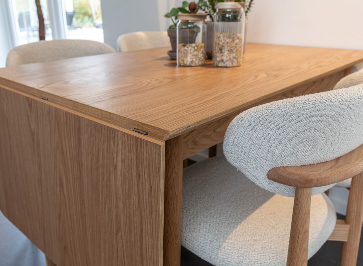 Upptäck den perfekta kombinationen för både vardagsmåltider och fina middagar – en tidlös matgrupp där kvalitet, funktion och skandinaviskt formspråk möts. Med Oskar klaffbord får du ett elegant bord i ek med smart klafflösning som enkelt ger extra utrymme när du behöver det. Tillsammans med den stilfulla stolen Le Chic, som kombinerar modern elegans med skön sittkomfort, skapas en harmonisk och sofistikerad helhet. Matgruppen passar lika bra i kök som i matsal och bidrar till en varm och inbjudande miljö där naturliga material möter genomtänkt design.