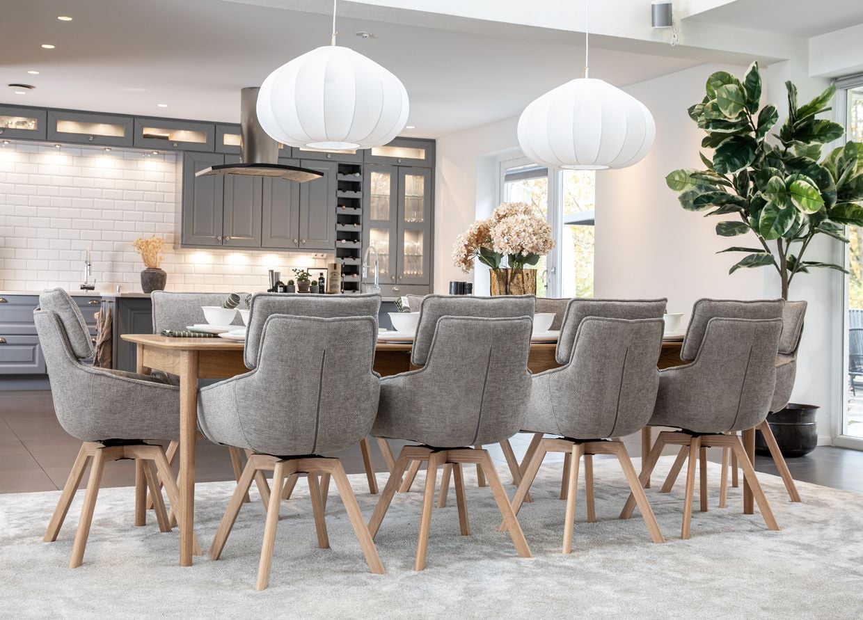 Snurrbar benställning, sits med kupad form – modern twist som lyfter komforten vid bordet.