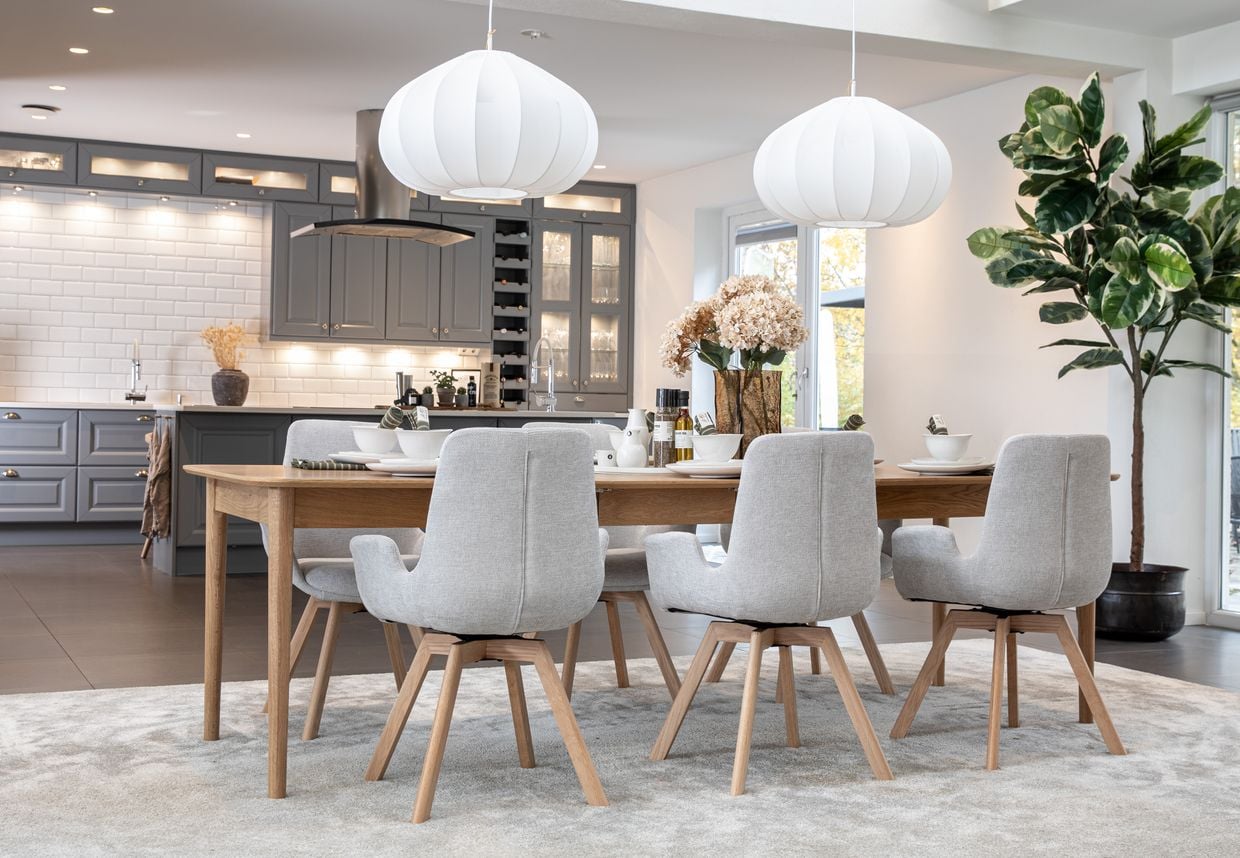 • Materialen matchar perfekt – bord i ek ihop med stolar med ekben skapar en enhetlig och harmonisk helhet.