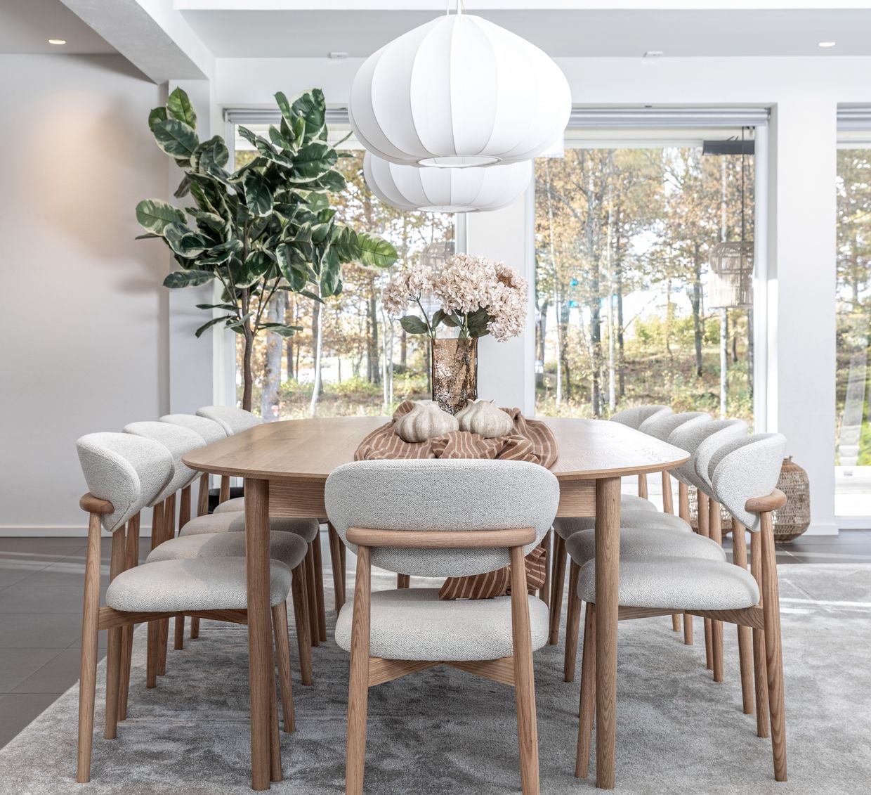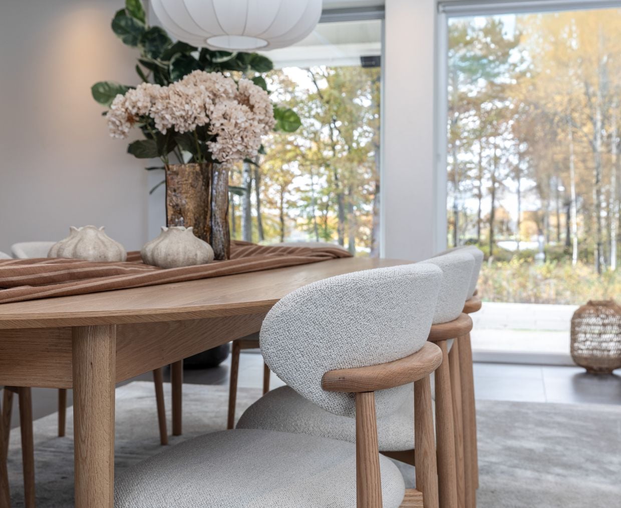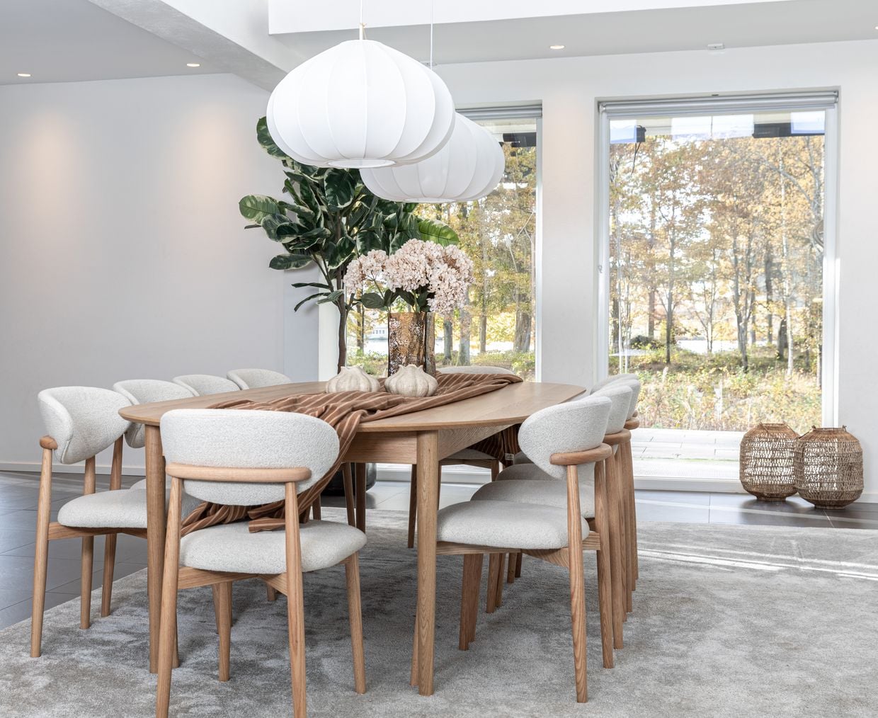 En stol du gärna sitter länge i – idealisk kombination med bordets generösa format.