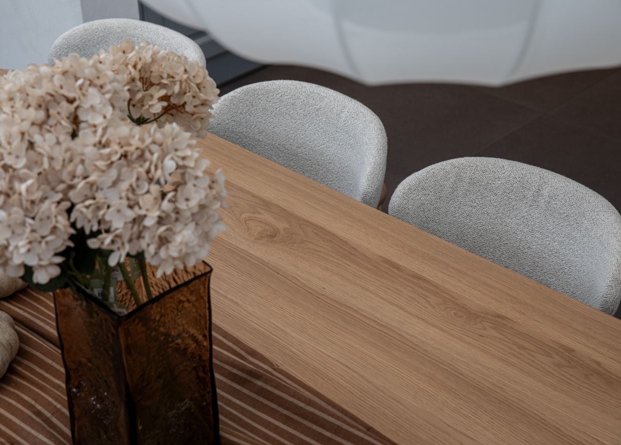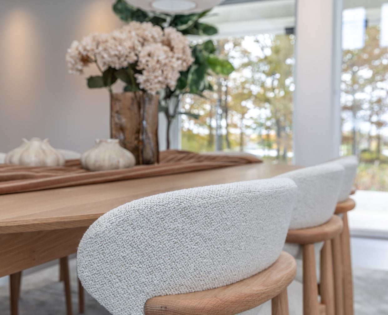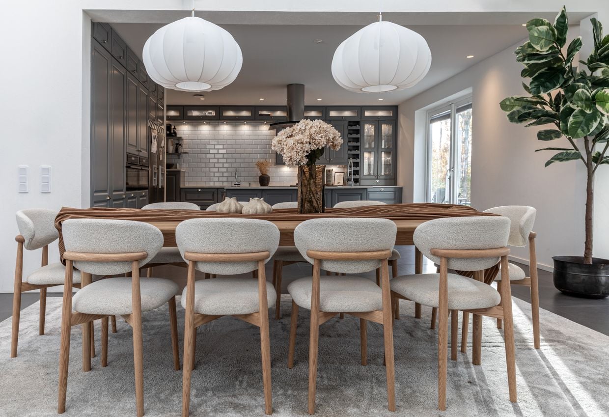 En stol du gärna sitter länge i – idealisk kombination med bordets generösa format.