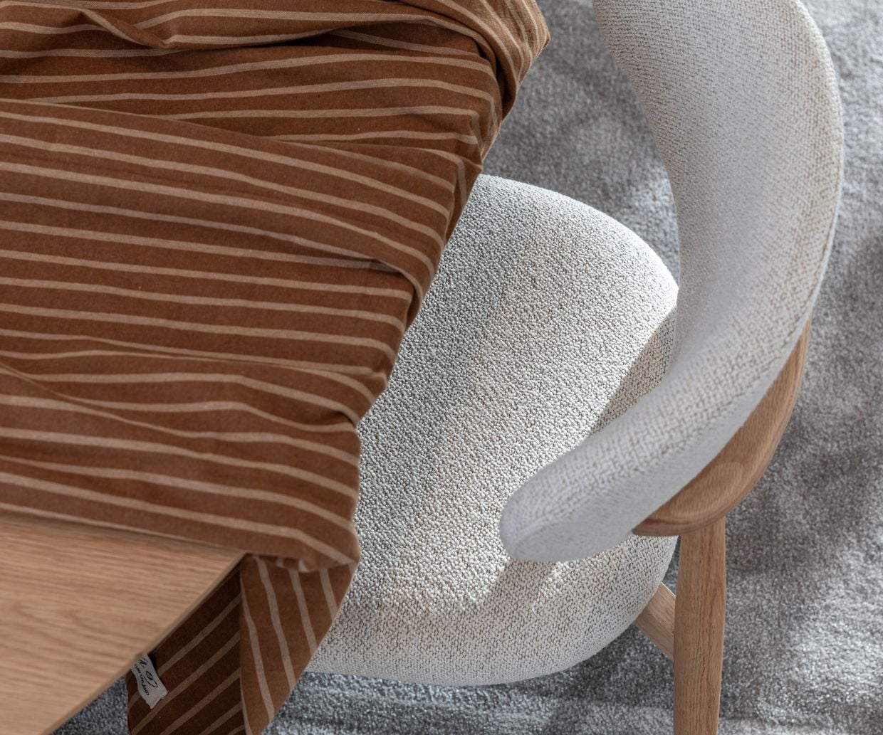 Bekväm design med lätt rundad rygg och stoppad sits – skön för såväl vardagsmiddagar som långa kvällar.