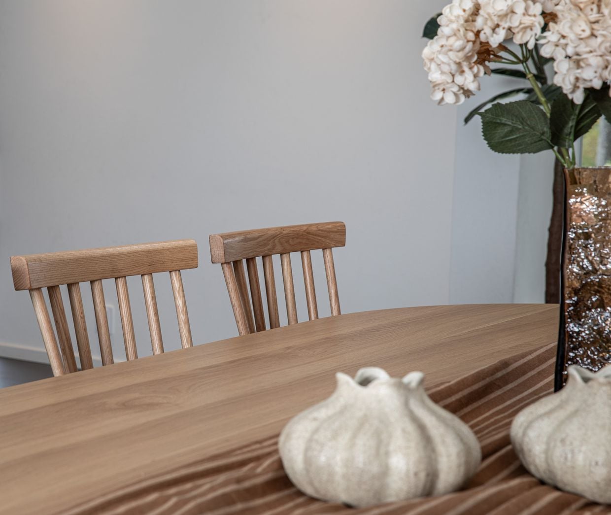 Tillverkad i massiv ek för styrka, hållbarhet och ett enhetligt uttryck med bordet