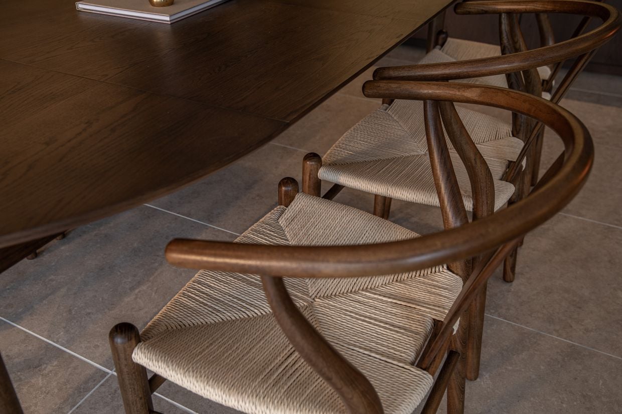 De stilrena Oskar-stolarna är designade för att matcha bordet både estetiskt och materialmässigt. Tillverkade i massiv ekmed ett rent och balanserat nordiskt formspråk erbjuder stolarna en stabil och bekväm sittupplevelse. Den enhetliga designen skapar ett lugnt helhetsintryck och förstärker känslan av kvalitet och genomtänkt design.