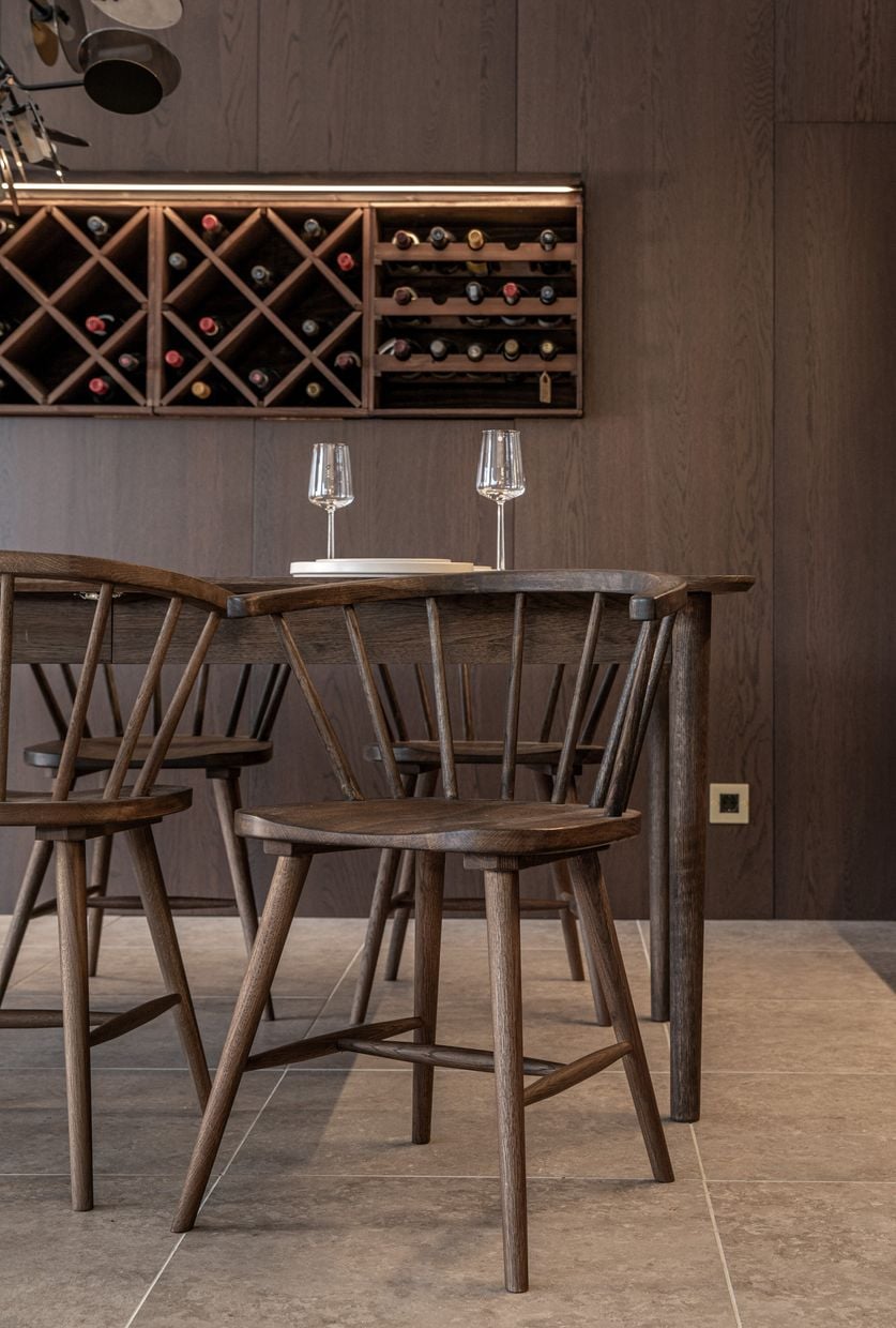 De klassiska Björke-stolarna kompletterar bordet med sitt genuina och tidlösa formspråk. Tillverkade i massiv ek med noggrant formade detaljer erbjuder Björke en stabil och bekväm sittupplevelse. Stolens luftiga design och naturliga uttryck passar perfekt runt det runda Oskar-bordet och förstärker känslan av äkta trä och nordisk tradition.