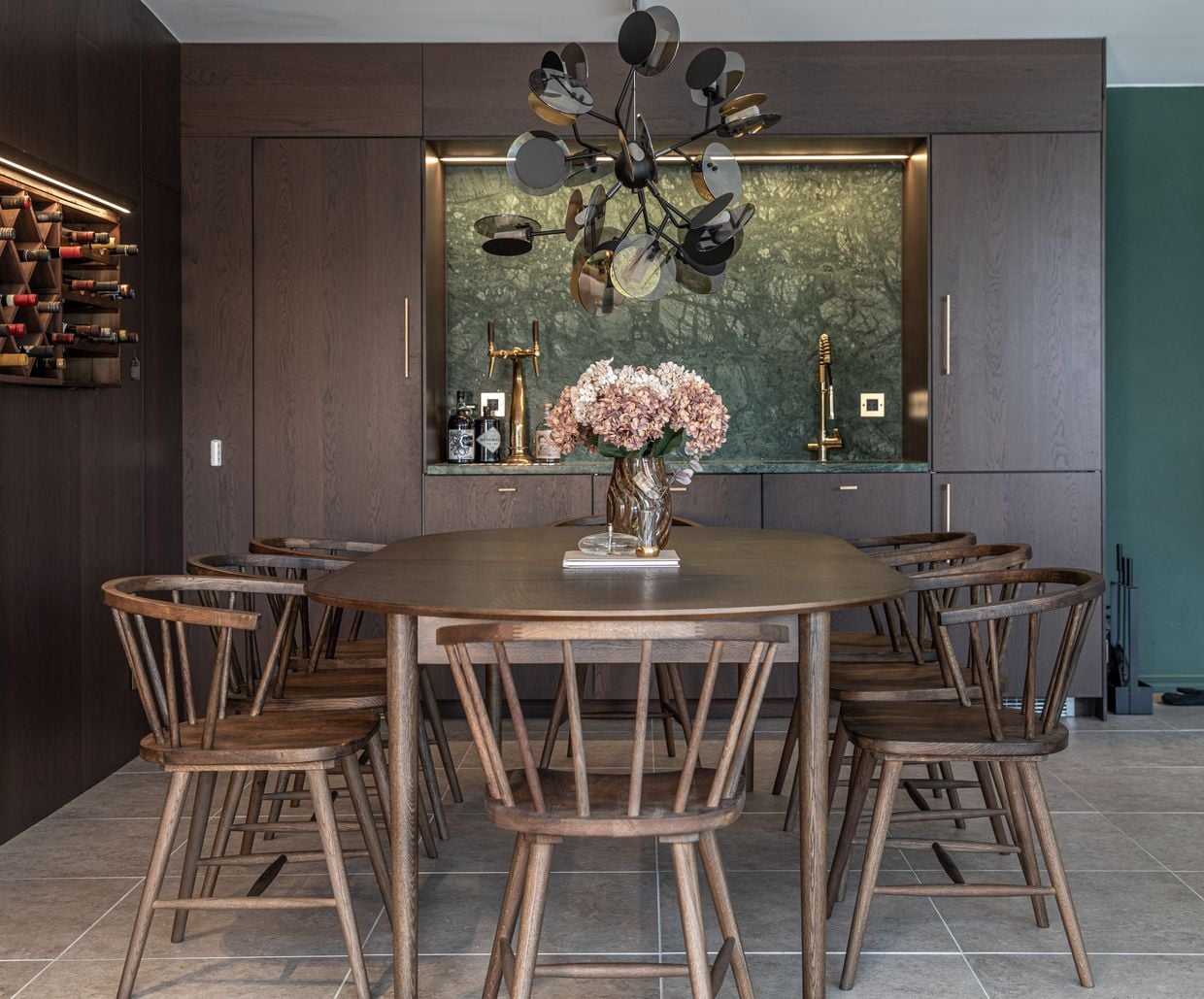 Matgruppen Oskar runt matbord med stolarna Björke är ett tidlöst och gediget val för dig som uppskattar naturliga material, klassisk form och äkta nordisk hantverkskänsla. Den runda formen tillsammans med den djupa tonen i smoked oak skapar en varm och harmonisk matsalsmiljö.
