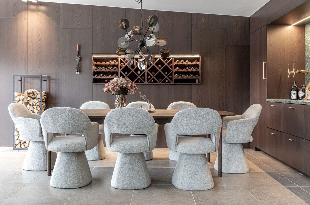 Oskar matgrupp är en exklusiv och välbalanserad helhet där gedigna material möter mjuka former och modern funktion. Det generösa matbordet i rökt ek skapar en varm och elegant bas i rummet, medan Gytte-stolarna tillför ett ombonat uttryck och hög komfort som bjuder in till långa, avkopplande måltider.