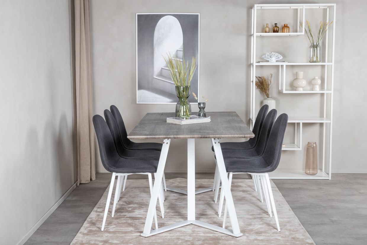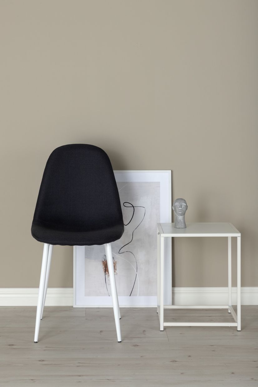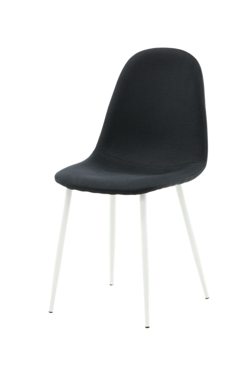 Matstolen från serien Polar har en rundad utformning med klassisk design. Rygg och sits är klädd i svart polyestertyg och ben i vit pulverlackerad metall. Den stilrena designen gör stolen enkel att matcha med övrig inredning.