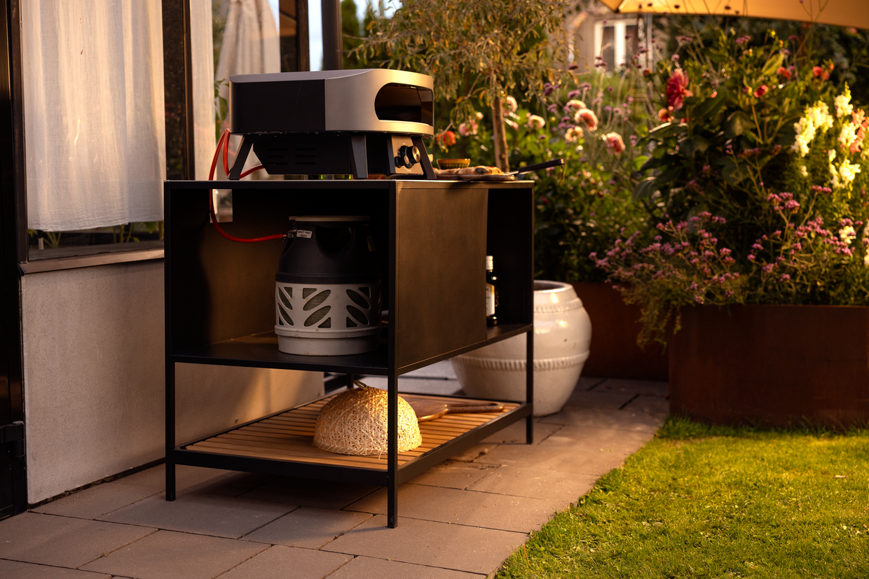 Skapat för pizza. Preppat för mer. Prep är det perfekta uteköket för pizzaugnar och utomhusmatlagning. Den generösa arbetsytan är i borstad aluminium som är reptålig och lätt att rengöra. Smarta detaljer som plats för gasolflaska och en praktisk hylla undertill gör Prep både funktionell och stilfull.