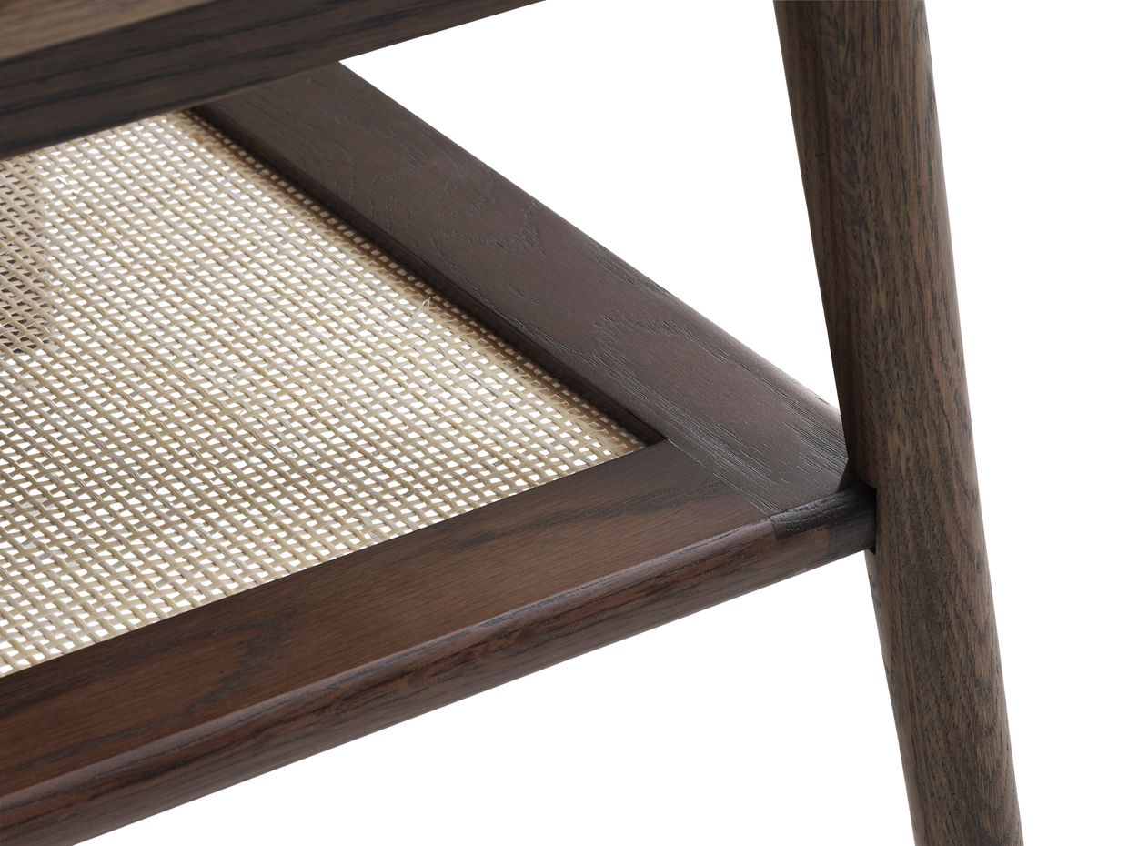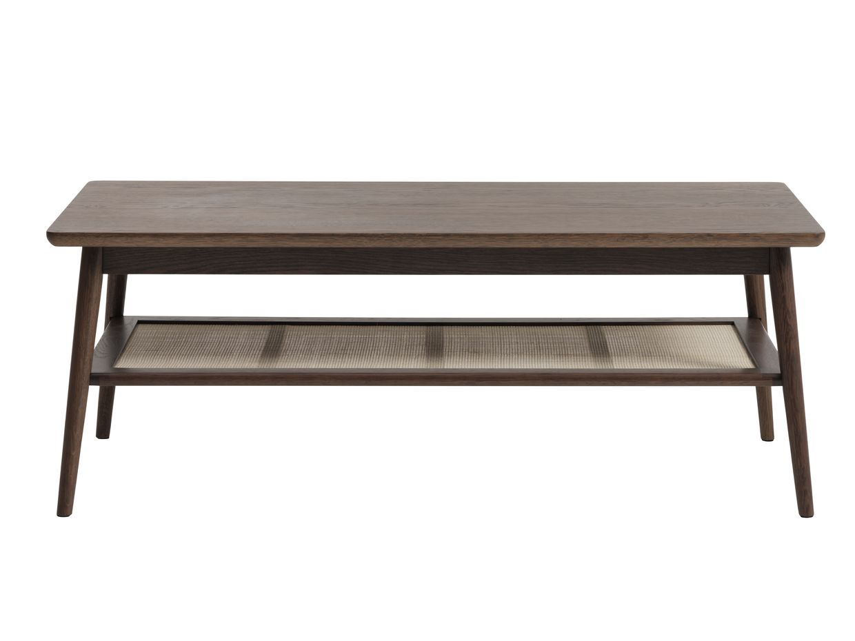 Barrali-soffbordet kombinerar naturligt färgad ek och polyrattan med eleganta ekben. Det nedre hyllplanet erbjuder praktiskt förvaringsutrymme samtidigt som det ger bordet en unik och stilfull design.