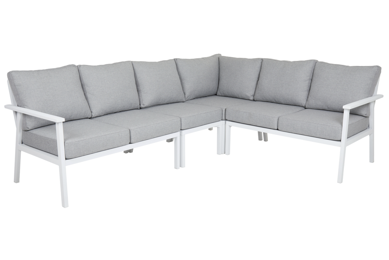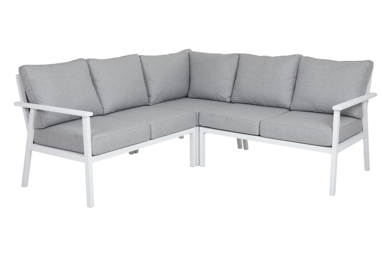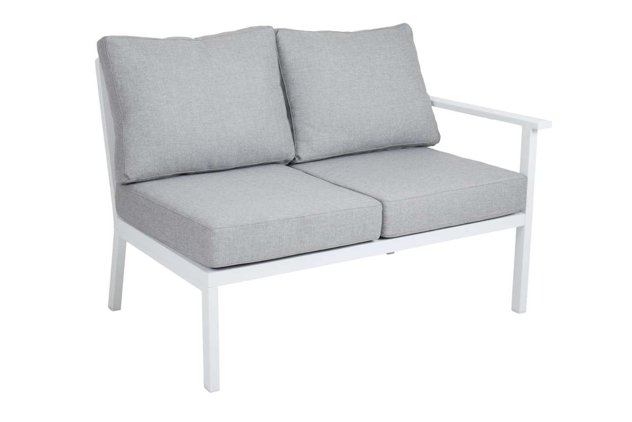 Den populära Samvaro-serien har nu utökats med många nya lounge-delar för ännu fler kombinationsmöjligheter. Denna avslutsdel har bekväma dynor i olefintyg med en vattenavvisande liner. Det snygga armstödet är lätt rundat vilket ger en skön känsla i detaljerna. Den lite lägre höjden är perfekt både för avkoppling och fikastunder. Finns i två färgkombinationer. En modern och samtidigt klassisk serie i aluminium som bjuder på en rad kombinationsmöjligheter. De runda och mjuka formerna skapar en trivsam och inbjudande känsla i denna nya serie där detaljerna står i fokus. Finns med stomme i vit, grå eller khaki aluminium.