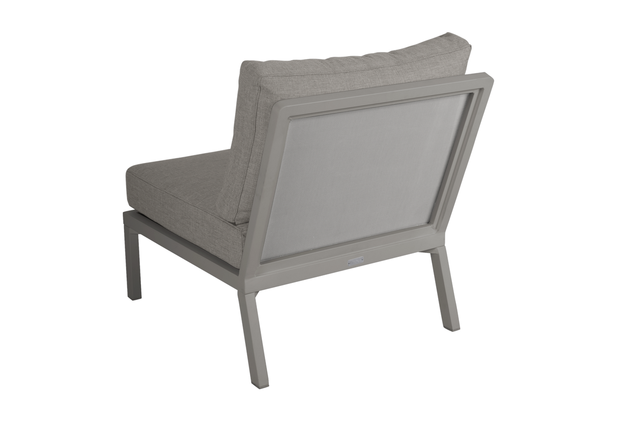Den populära Samvaro-serien har nu utökats med många nya lounge-delar för ännu fler kombinationsmöjligheter. Denna mittdel har bekväma dynor i olefintyg med en vattenavvisande liner. Den lite lägre höjden är perfekt både för avkoppling och fikastunder. Finns i två färgkombinationer. En modern och samtidigt klassisk serie i aluminium som bjuder på en rad kombinationsmöjligheter. De runda och mjuka formerna skapar en trivsam och inbjudande känsla i denna nya serie där detaljerna står i fokus. Finns med stomme i vit, grå eller khaki aluminium.
