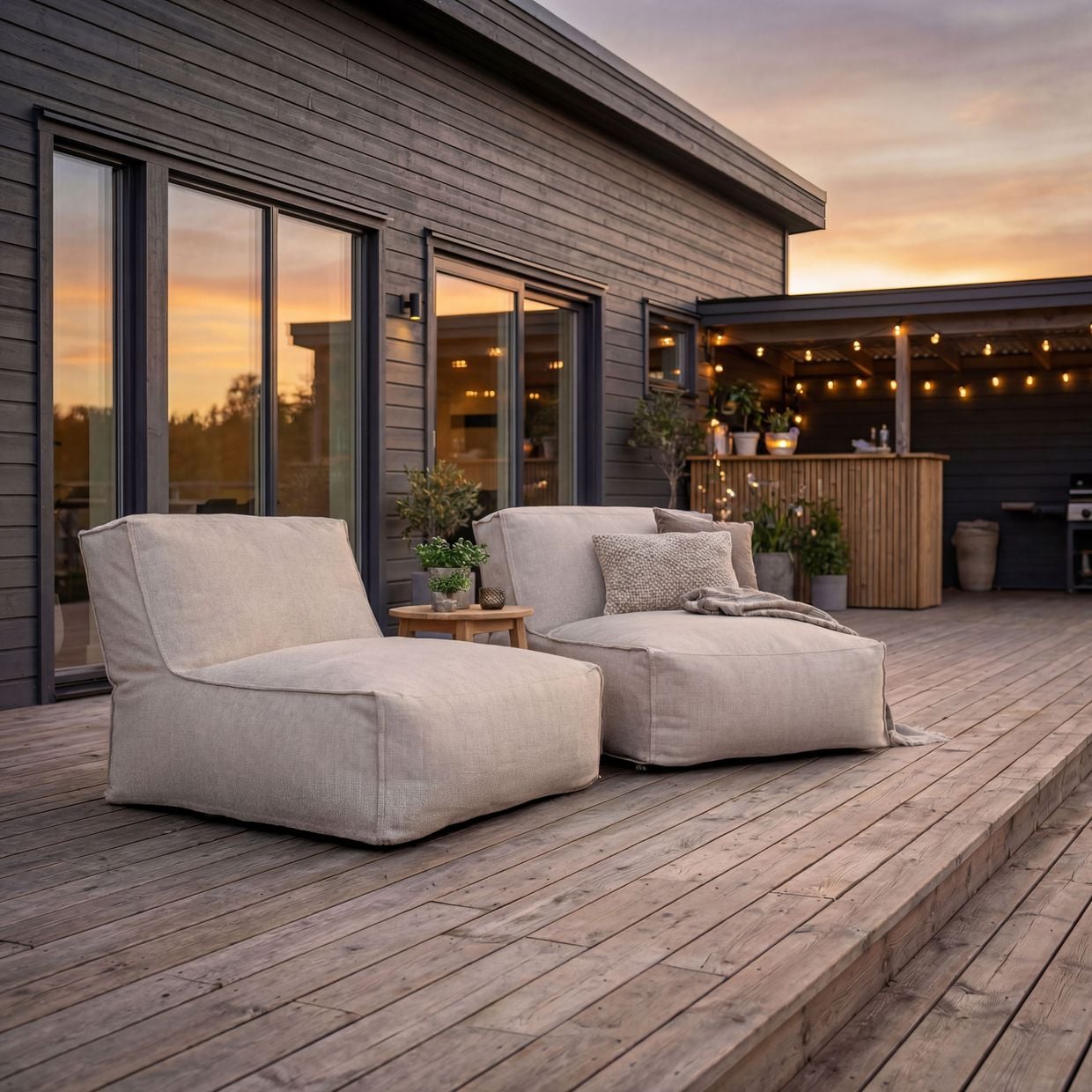Använd dom som bekväma fåtöljer på altanen, terrassen eller i uterummet – eller kombinera flera delar från Skärgård-serien för att skapa en modulsoffa som anpassas efter din yta och dina behov.