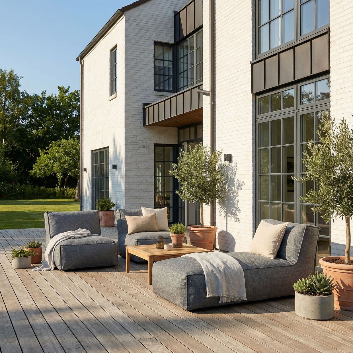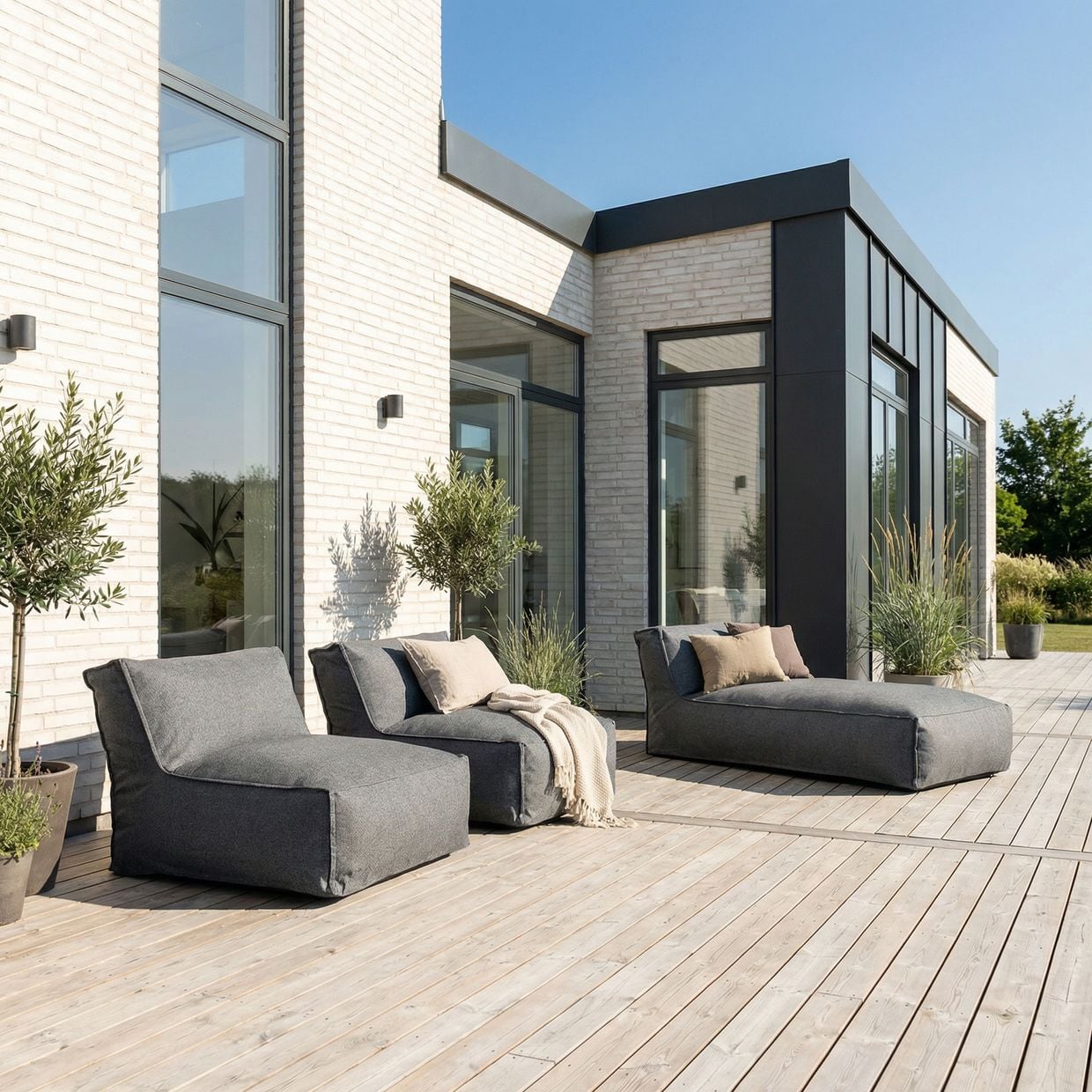 Den eleganta antracitgrå färgen ger ett sofistikerat och modernt uttryck som passar perfekt i både minimalistiska och klassiska utomhusmiljöer.