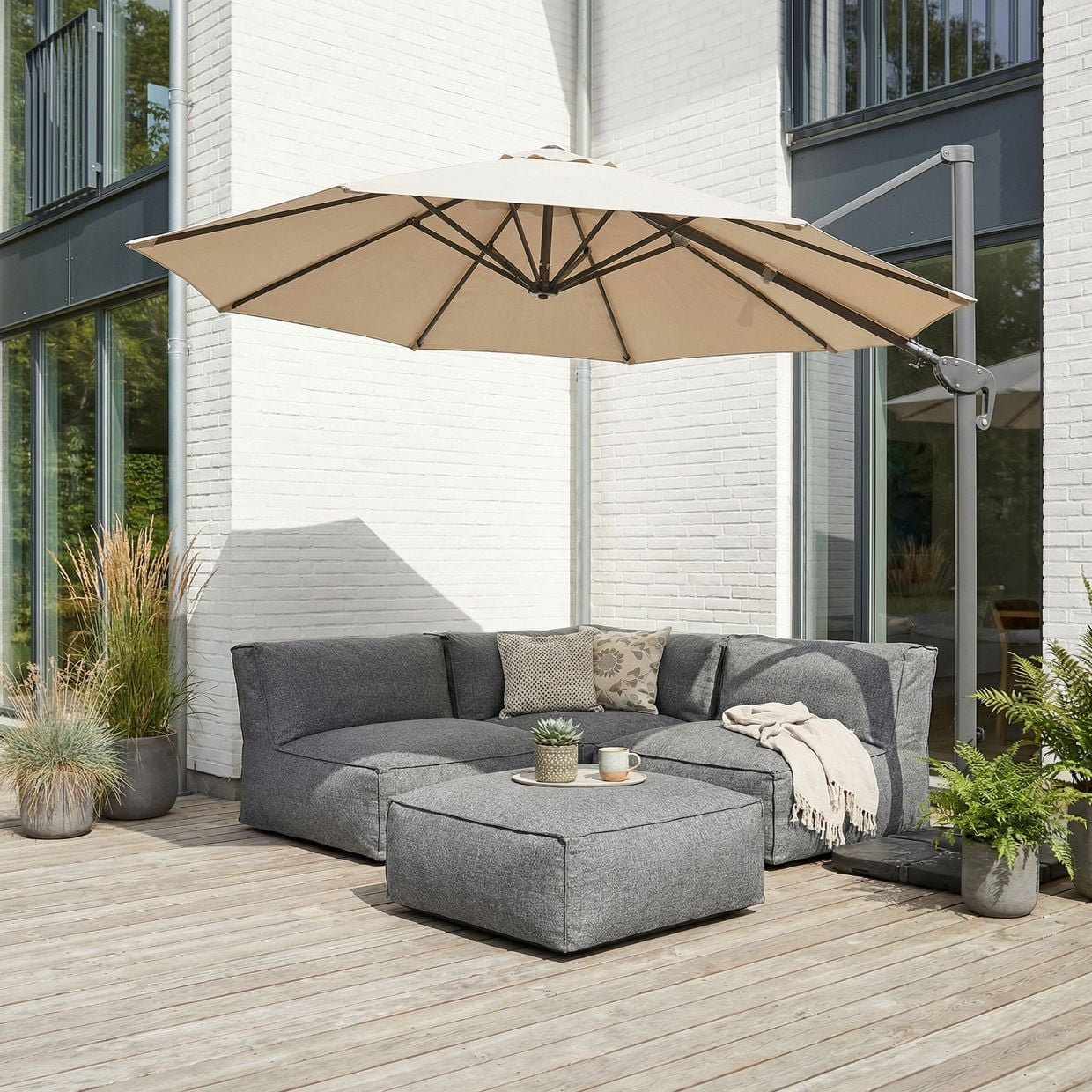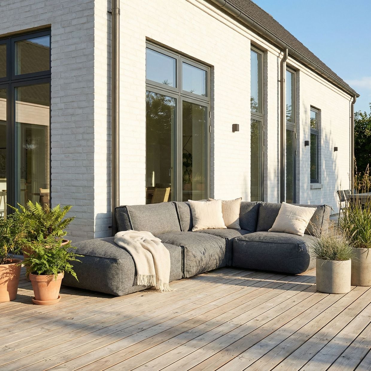 Den eleganta antracitfärgen ger ett modernt och sofistikerat uttryck som passar lika bra i minimalistiska miljöer som i mer klassiska uterum.