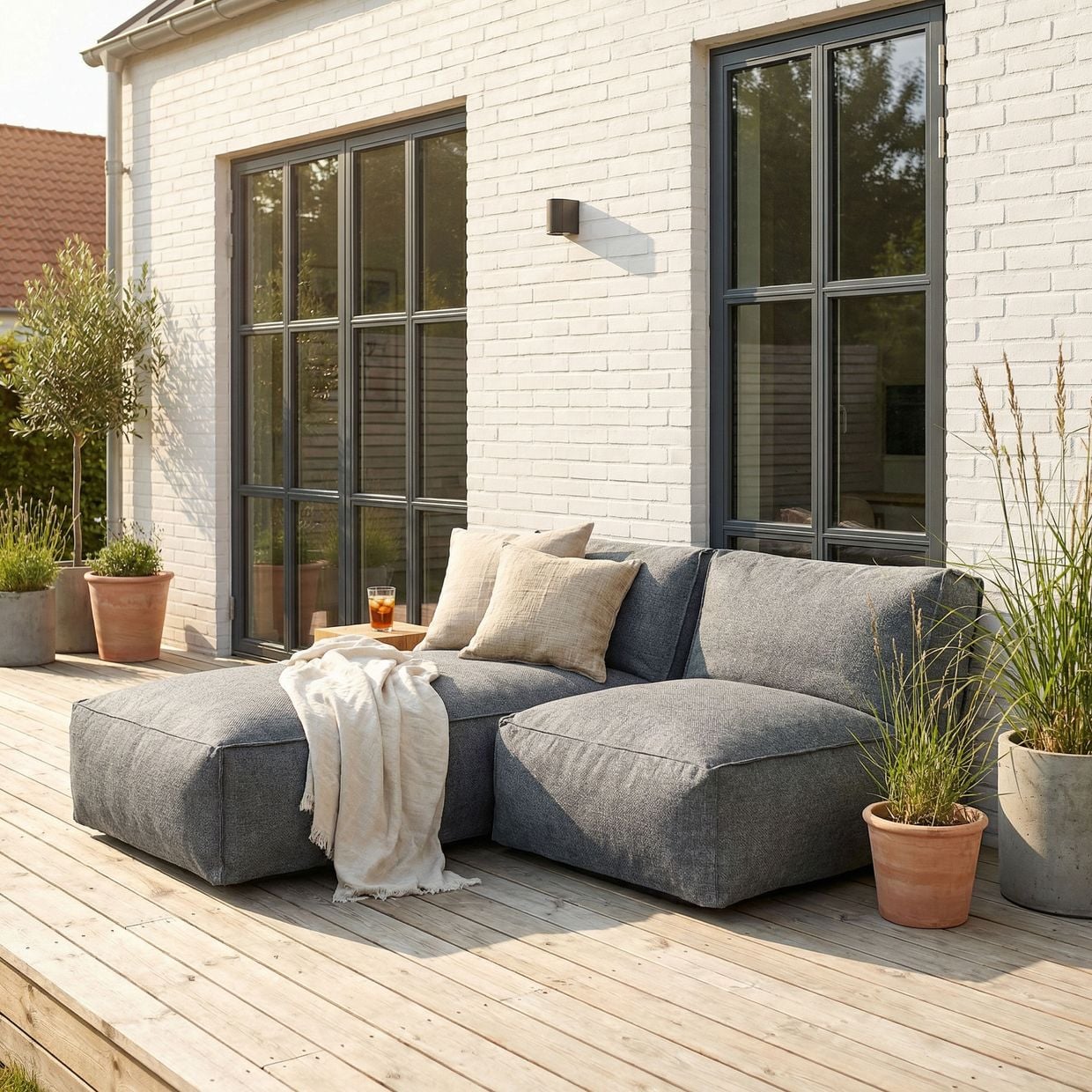 Den eleganta antracitfärgen ger ett modernt och sofistikerat uttryck som passar lika bra i minimalistiska miljöer som i mer klassiska uterum.