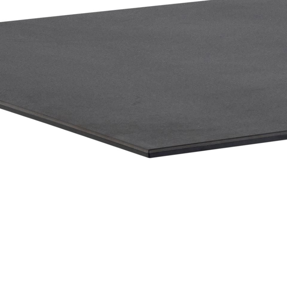 Bord med skiva i keramik där underedet i metall är format för att inte vara vägen hur du än placerar stolarna.