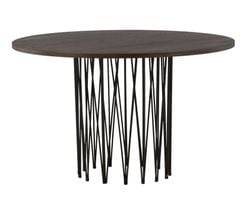 Ett runt matbord med en vacker brunfärgad bordsskiva i MDF med fanér och ett dekorativt cylinderformat underrede i svart metall. Runt bord är perfekt för trevliga middagar, här hamnar ingen på kanten. I gruppen ingår 4st Ribe stolar i brunt retro PU-skinn med svart metallunderrede.