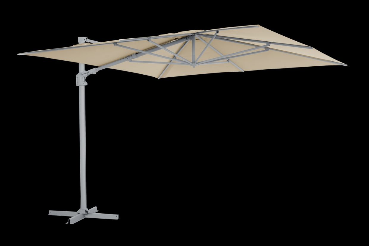 Vinovo är ett fristående parasoll med ett 250 g kapelltyg (solutiondyed) aluminiumstativ med vev, lutning och steglös kontroll för enkel justering. Basen är inkluderad men måste förankras med parasollfotsvikter eller liknande.