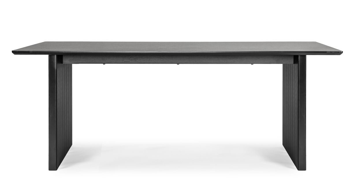 Bordet Virsbo, med sina generösa mått på 200x100 cm, erbjuder en slitstark yta i faner och MDF, vilket gör det perfekt för både vardagsmiddagar och festliga tillfällen. Den minimalistiska och moderna designen i svart gör att bordet passar in i många olika typer av inredningar och blir en naturlig mittpunkt i ditt hem.