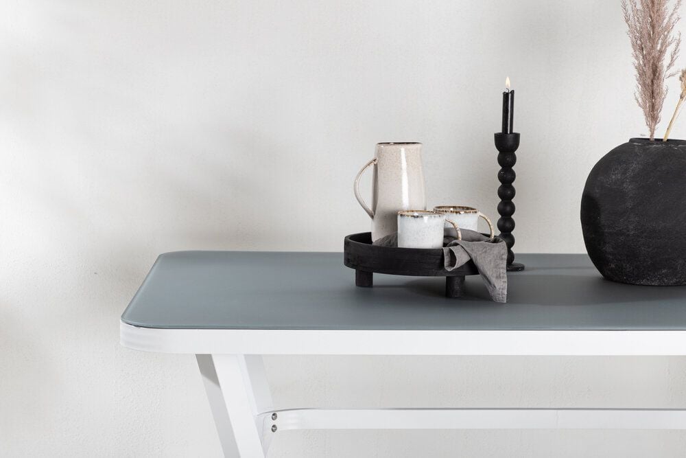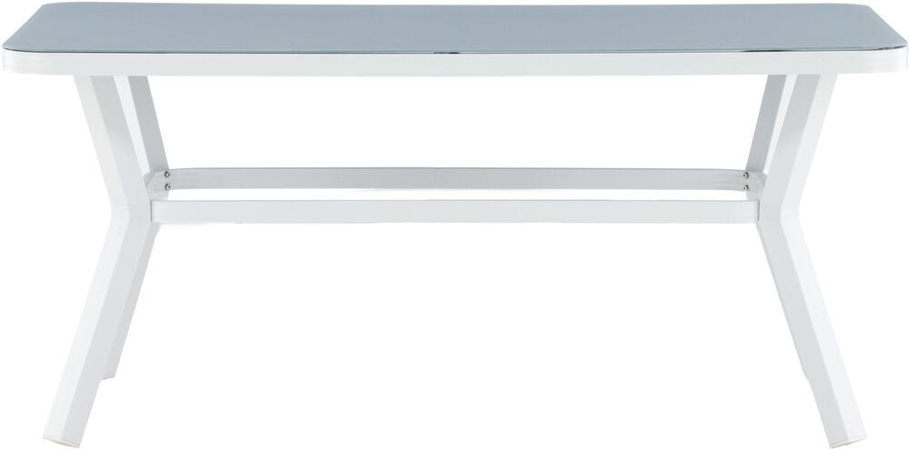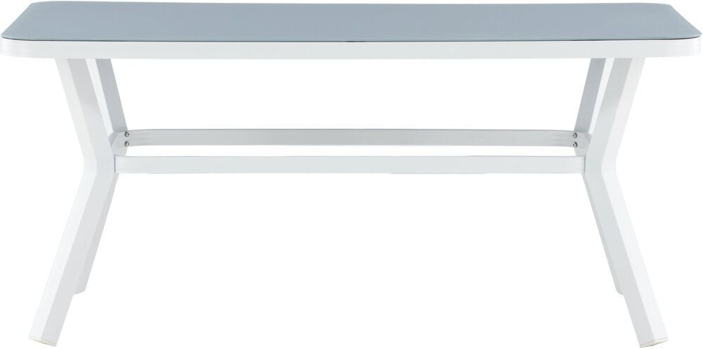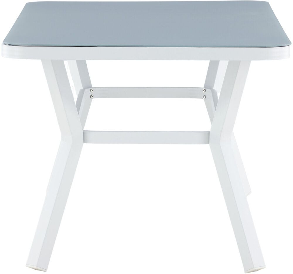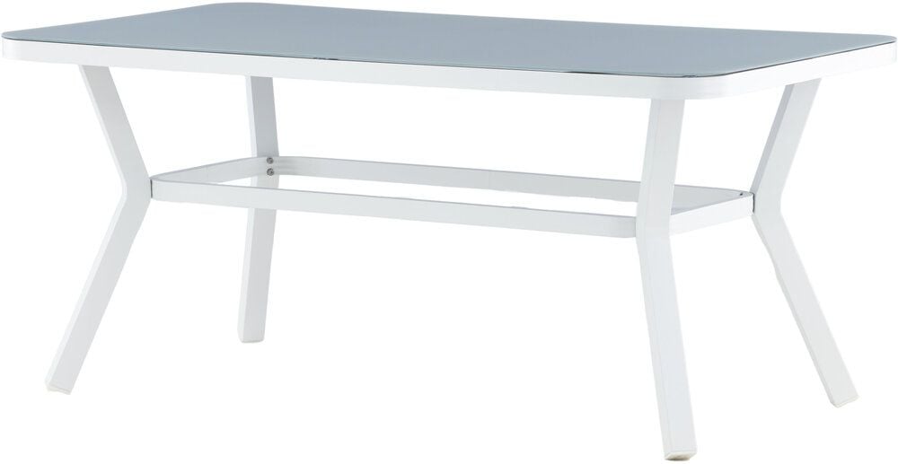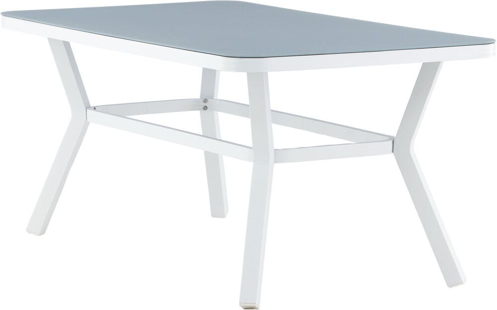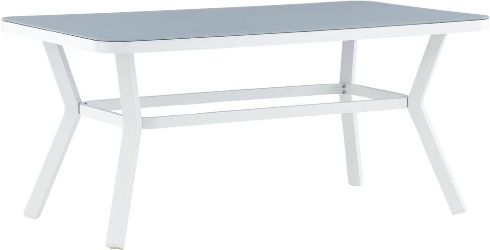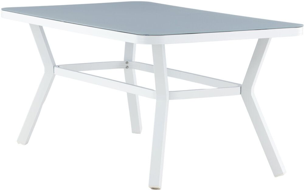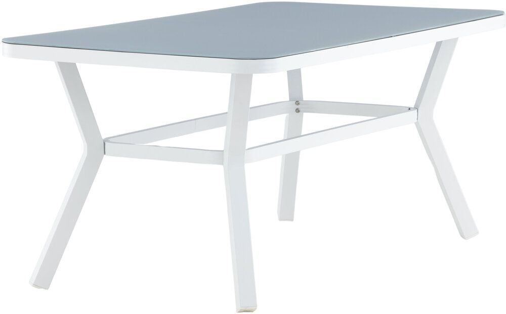 Virya - robust matbord med plats för hela familjen. Tillverkat med en bordsskiva i glas och ett underrede i vit aluminium. Ett matbord för utebruk som skapar en härlig känsla i uterummet såväl som i trädgården. Matcha med ett par matstolar i samma serie för att få den kompletta matgruppen!