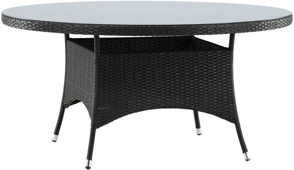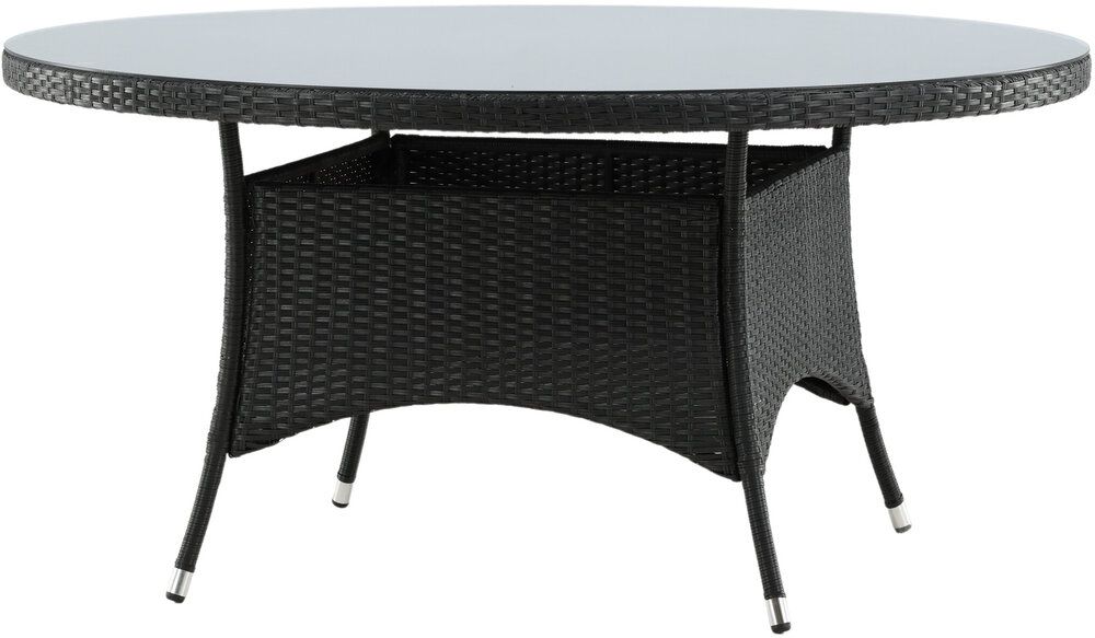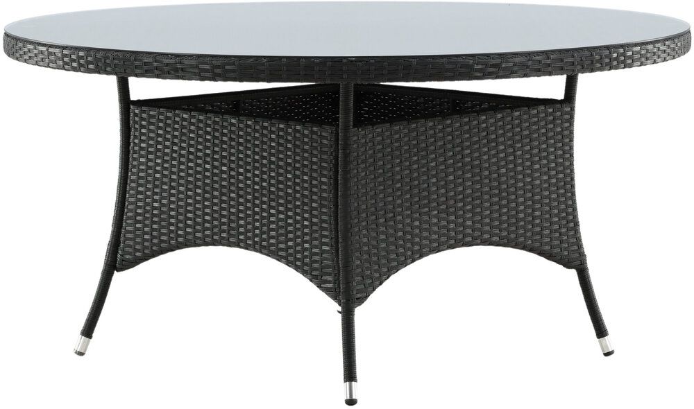 Volta är ett runt matbord i robust design som gör ett hållbart och charmigt intryck! Bordsskivan är i stilrent glas och underredet i slitstark, svart konstrotting. Möblera i uterummet eller på uteplatsen och låt middagarna utomhus bli dagens höjdpunkt – här hamnar ingen på kanten!
