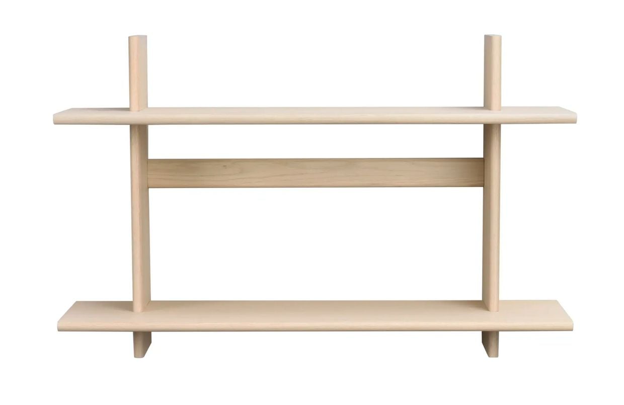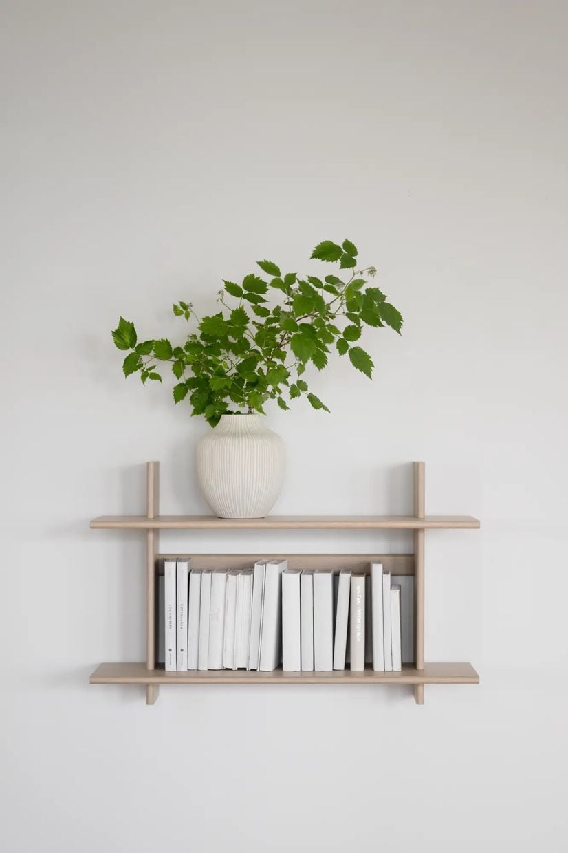 Denna stilrena vägghylla med två hyllplan är mer än bara förvaring, den är en formstark inredningsdetalj som sätter tonen i rummet. Med sin enkla men genomtänkta design i vitpigmenterad ek och ekfaner skapar hyllan en varm och modern känsla, perfekt för det stilmedvetna hemmet.