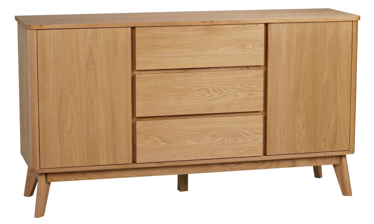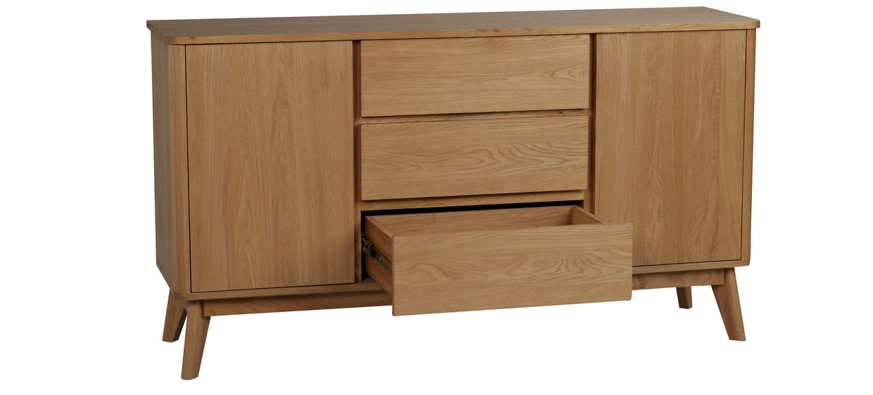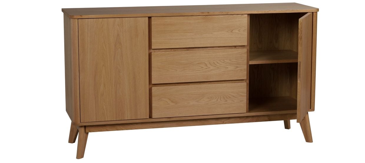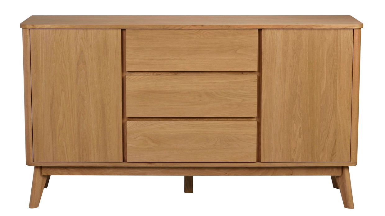 Stilrent sideboard i skandinavisk design med gott om förvaring. Dörrar och lådor med soft-close stängning. Sideboardet är i lackad ek. Ingår i vår serie Yumi.
